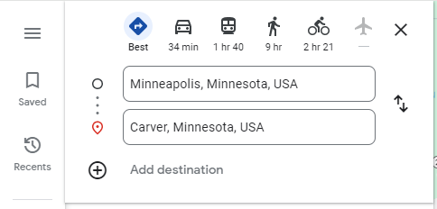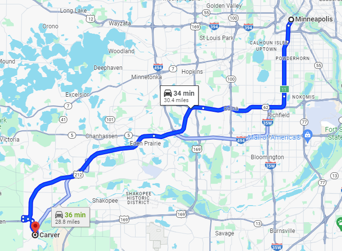 The drive from Minneapolis to Carver MN takes around 45 minutes in normal traffic. We provide accurate quotes based on exact pickup and dropoff locations. No surprise fees!